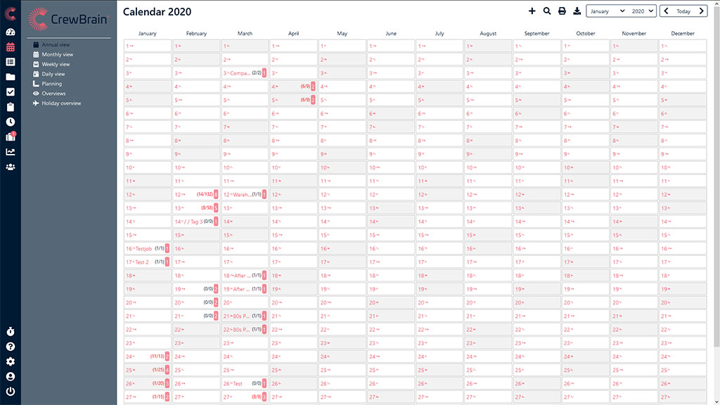 CrewBrain’s various calendar views allow you to keep up to the minute regardless of how many events are involved. In addition to annual, monthly, weekly and daily views, you can also view staff availability and the current holiday situation.