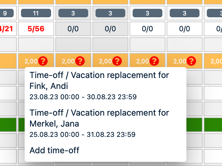 Vacation overviewIn the calendar, we have extended the vacation overview in this update. There it is now visible if more than one vacation entry (e.g. a sick note and a vacation) are stored on one day. This way, errors and duplicate entries are noticed more quickly in this view. |