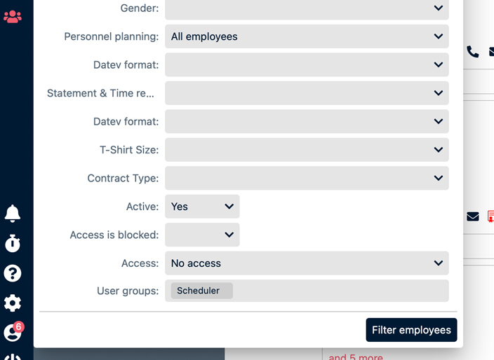 Neue FilterIn den Mitarbeiter-Stammdaten lässt sich nun nach Zugang und Benutzergruppen filtern. Dies ermöglicht das schnelle Auffinden von Mitarbeitern in bestimmten Gruppen oder ohne Zugang. Zudem wurde das Widget „auslaufende Zertifikate“ um einen Standortfilter ergänzt, über den die Ergebnismenge auf einen Standort eingegrenzt werden kann. |