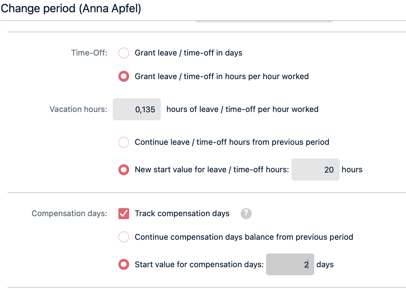 Time TrackingAs with nearly every update, we have enhanced time tracking once again. Compensatory days allow you to track work on Sundays and public holidays, while the option to grant vacation in hours is particularly relevant outside Germany. |